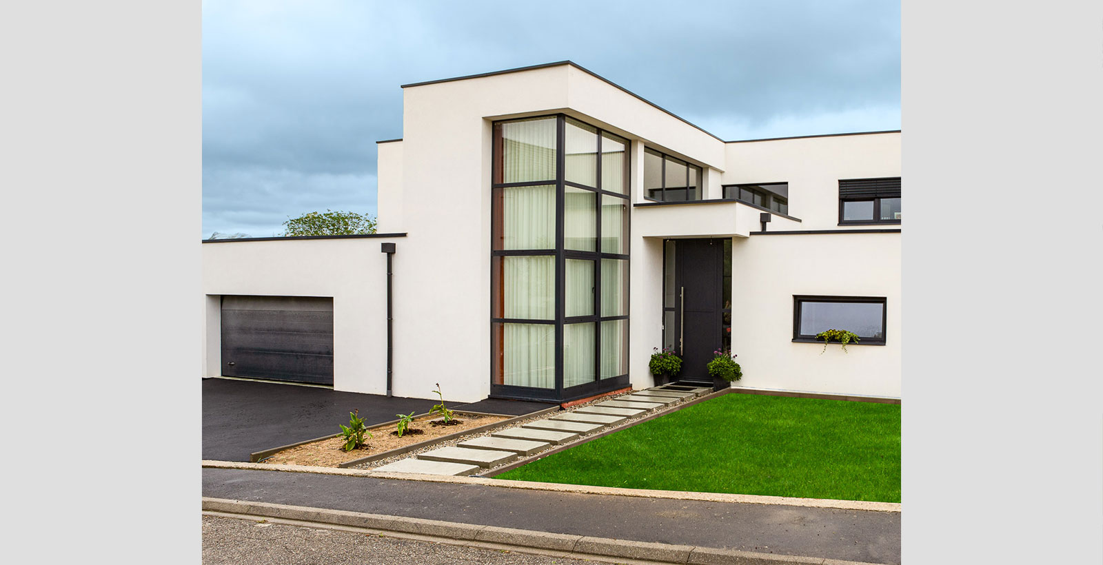 The uPVC windows are based on the Schüco Living 82 system, and the building features fix (non-opening), pivot-hung and tilt and turn windows. All in the anthracite grey colour.